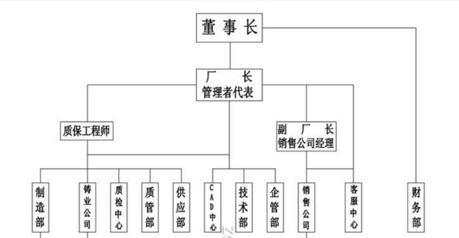 公司總經(jīng)理下面設置:銷售部、技術部、生產(chǎn)部、采購部、行政人事部、財務部 、售后部